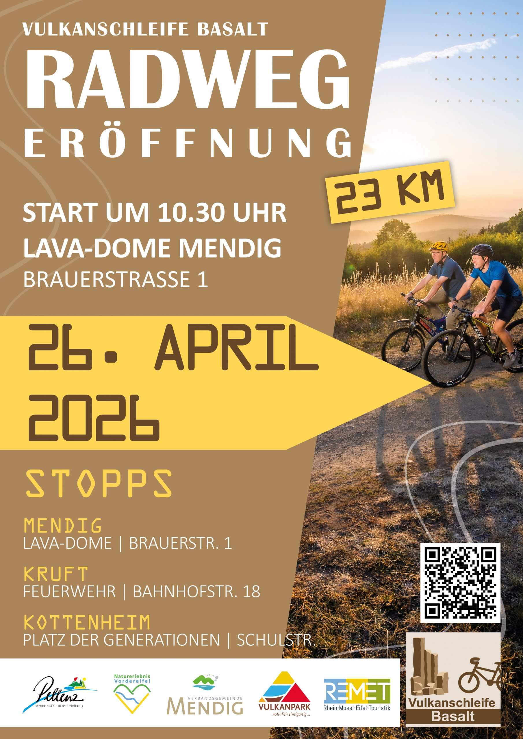 Mit der Eröffnung der 23 Kilometer langen Radroute „Vulkanschleife Basalt“ zwischen Kottenheim, Thür, Kruft und Mendig am Sonntag, 26. April, kommt ein weiteres touristisches Angebot in der Region hinzu.